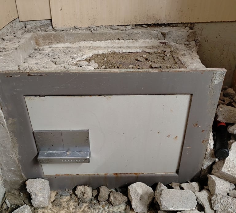 Ouvrir un coffre-fort emmuré et fixé au mur ou au sol.
